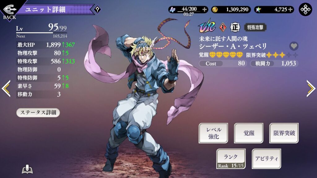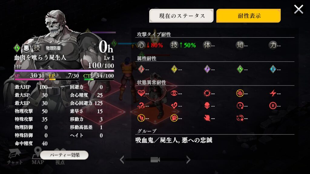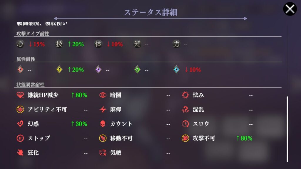 ユニットの耐性はユニット詳細のステータス詳細から確認することができます。