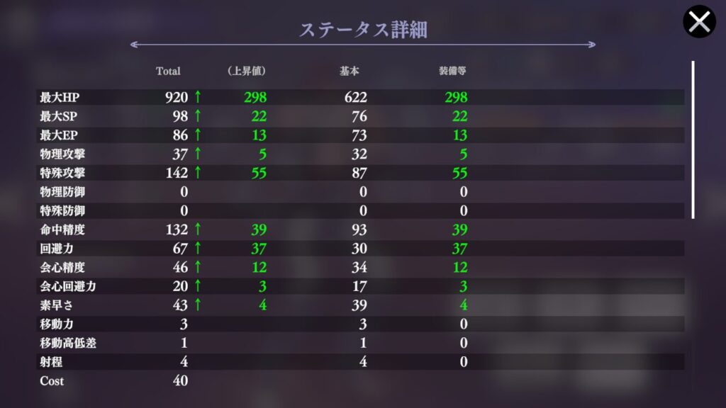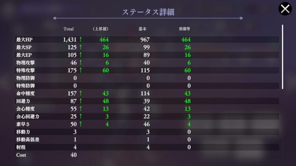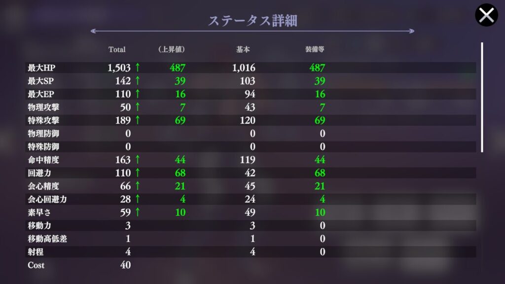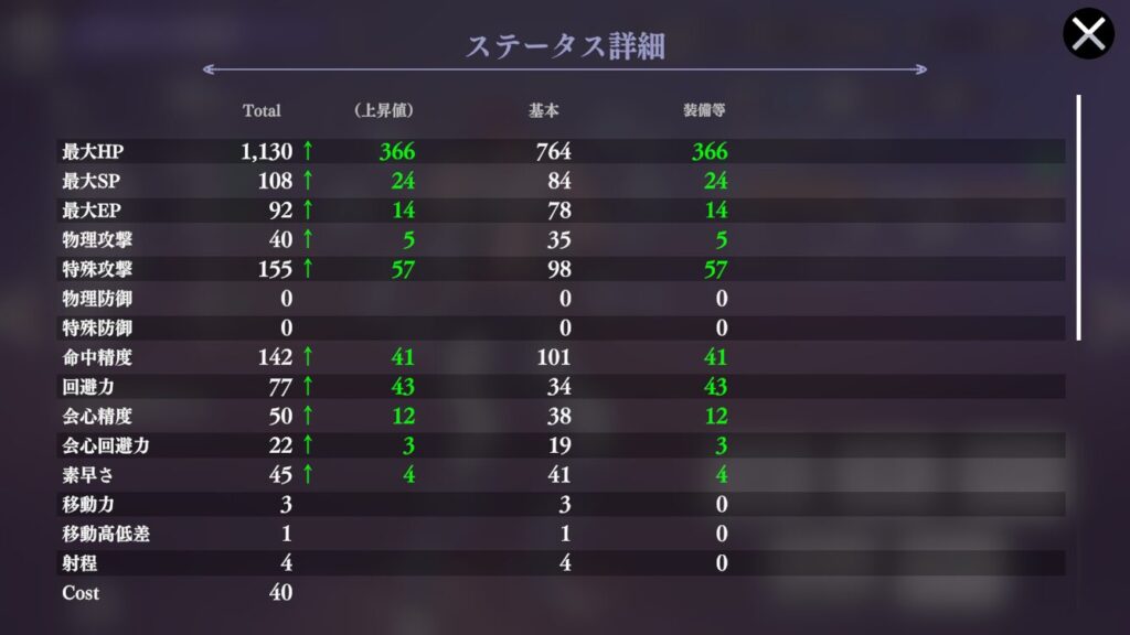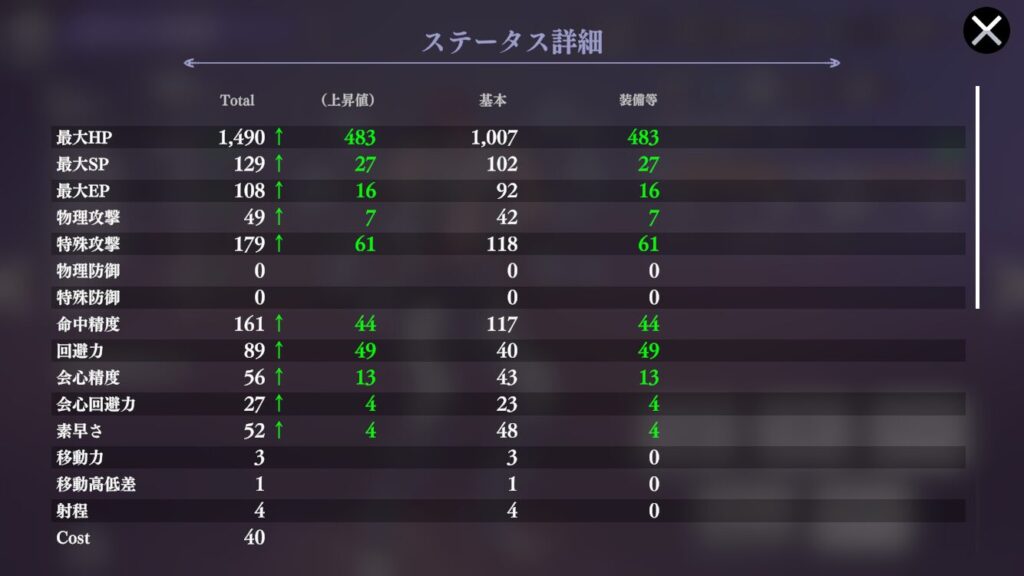 | 効果 | 4ターン自身の回避力 10%アップ | 4ターン自身の回避力 40%アップ |