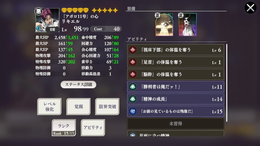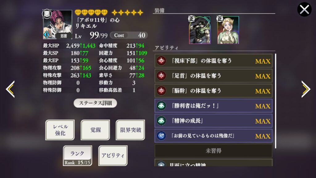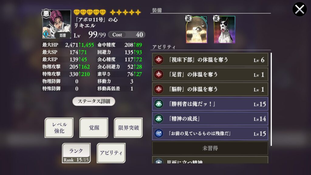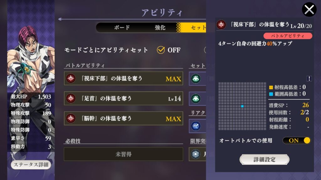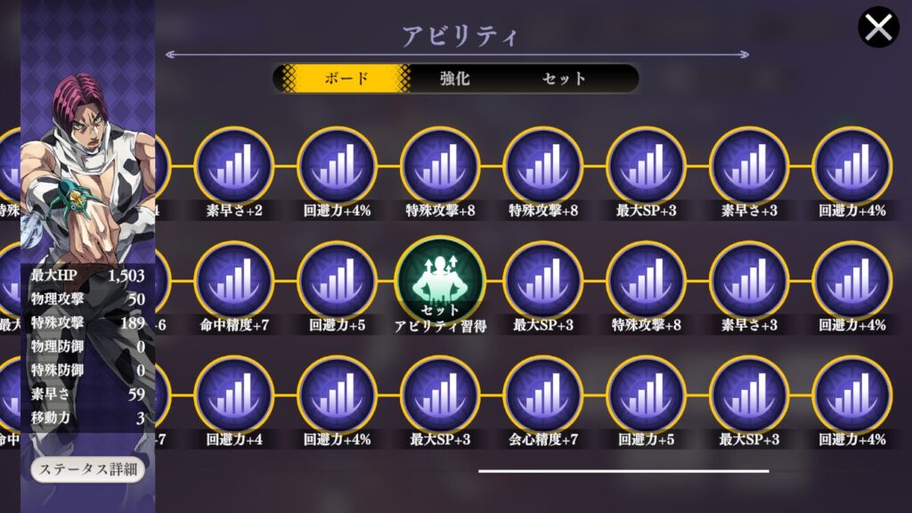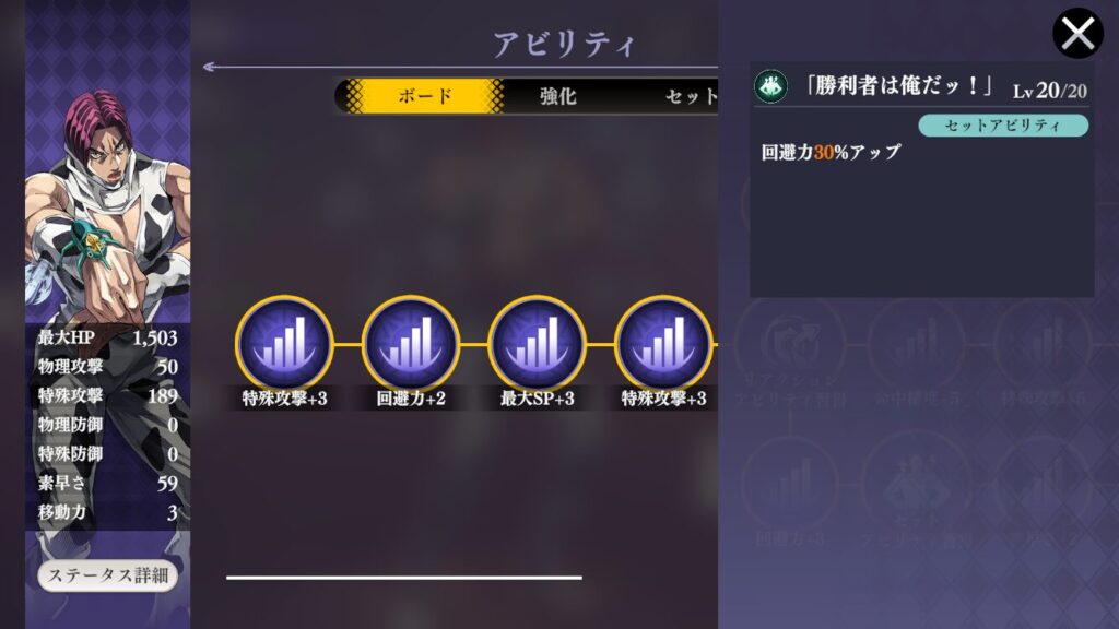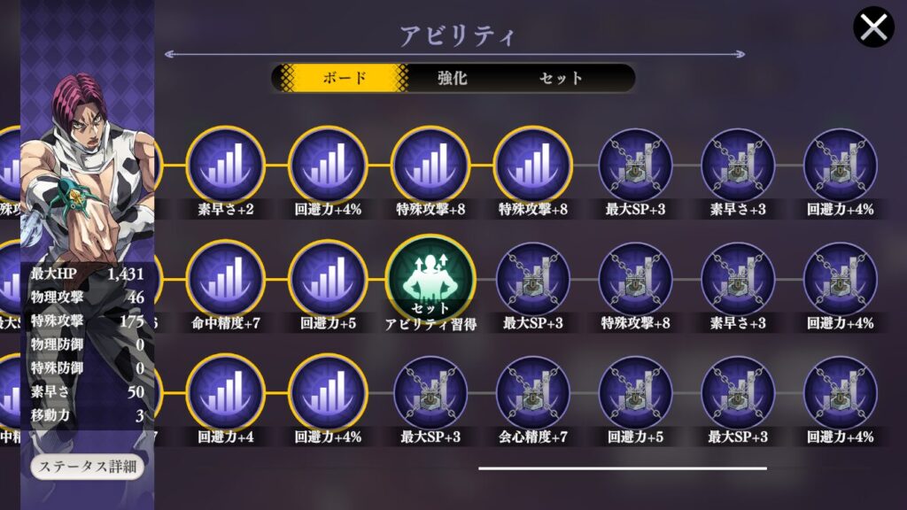 回避力は上がってきたがまあその辺周りのアビリティを強化優先かな~。