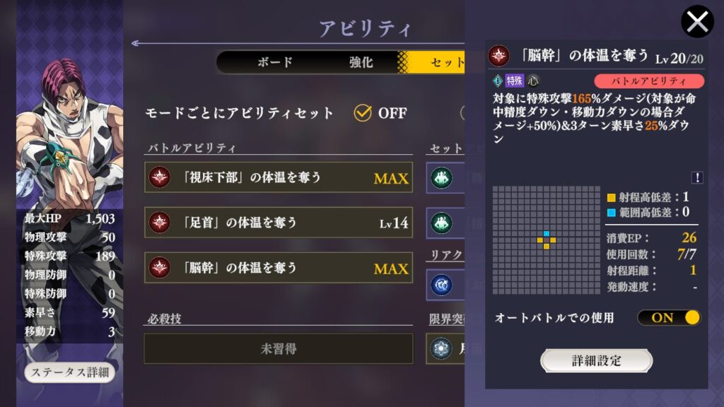 オートだと「視床下部の体温を奪う」を使ってくれないOrz(回避力バフ)