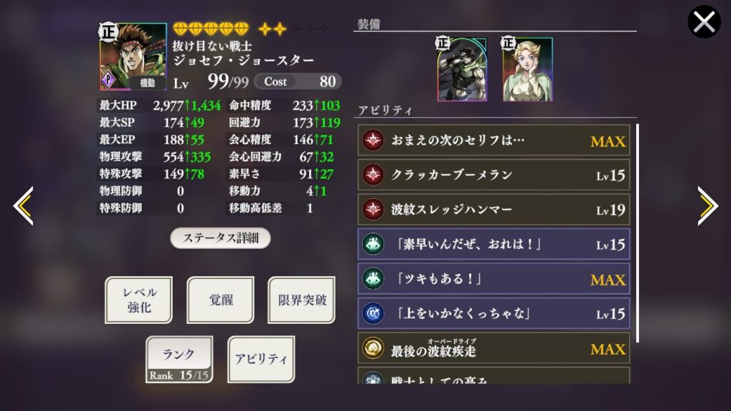 回避ジョセフを入手したのでそちらも育成したら比較などしてみようかと思います。