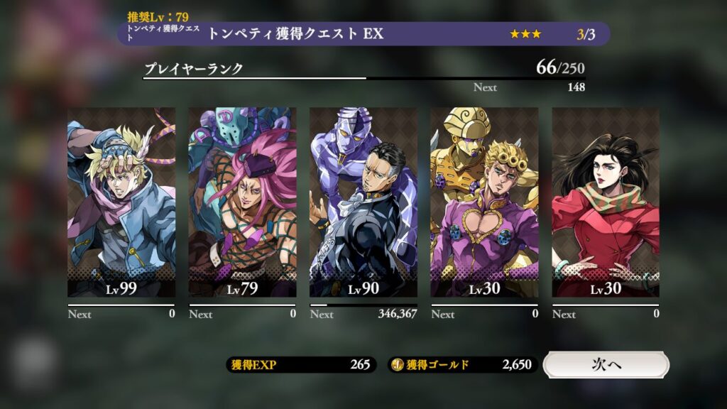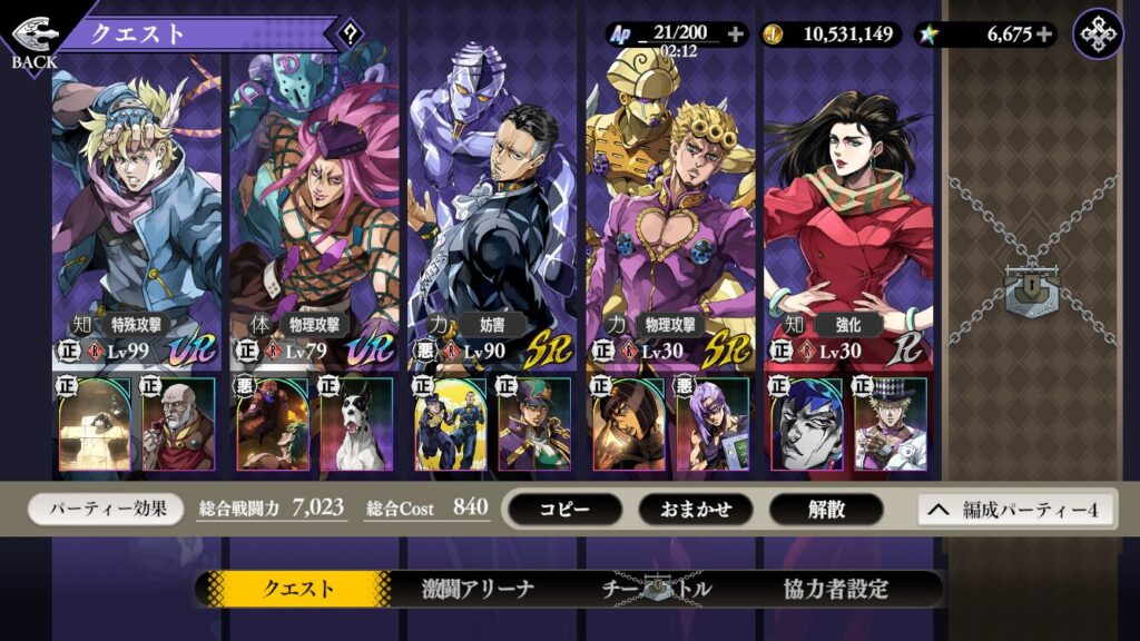 ジョルノとリサリサは完全に頭数合わせです💦(レベル30お察し)