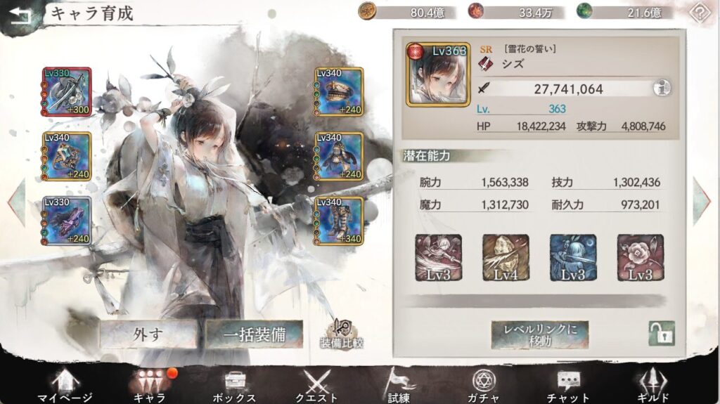 あんまり材料も無いので物魔防御貫通だけショップで交換して他は持ってるやつを付けました。