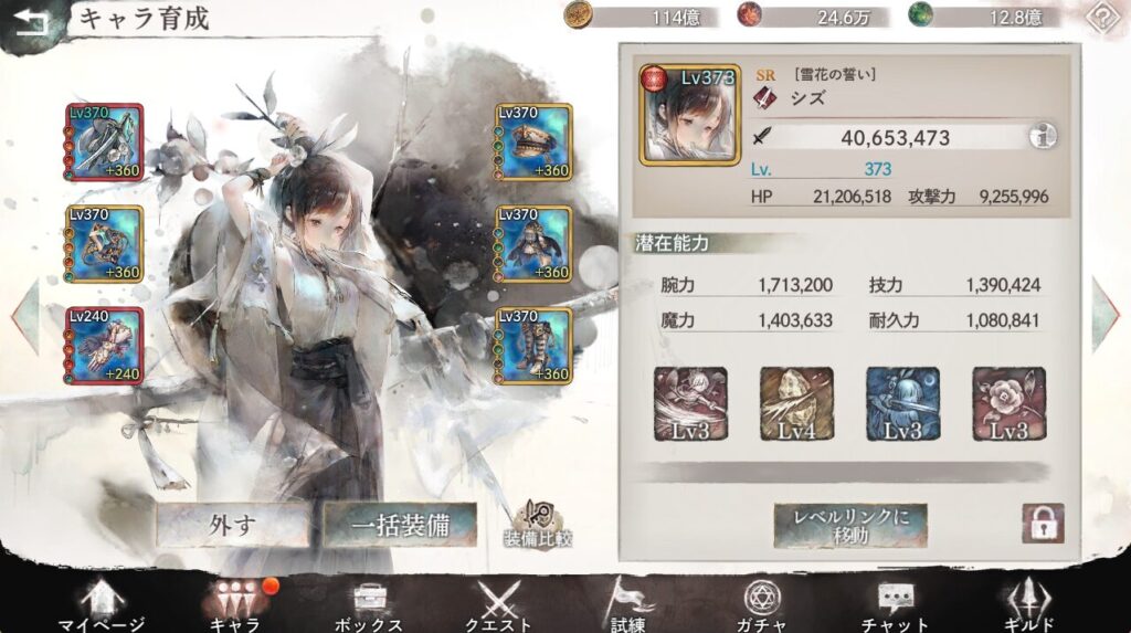 赤薬が足りないから装備強化はできないけど・・・Orz