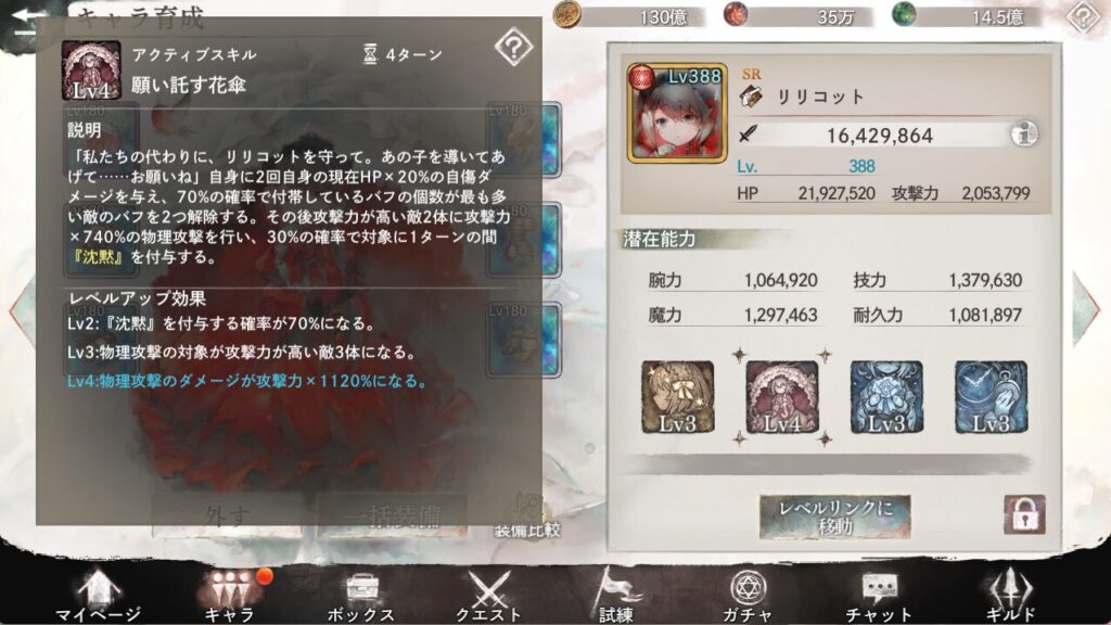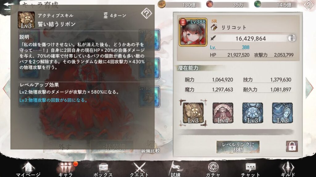 アクティブ1で敵1体(バフ最多のやつ)のバフを最大6個解除(専用武器LV1にて)